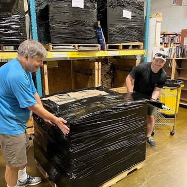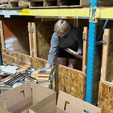 Volunteers work from 9a.m.-12p.m. on Mondays, Wednesdays, and Fridays sorting books for sale and shipment.